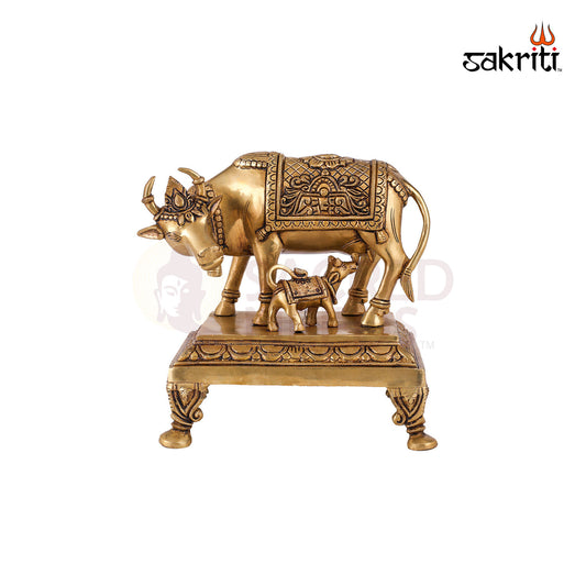 Sacred Needs Brass Cow and Calf Idol – 7.7 Inch Kamadhenu Statue for Home Decor & Pooja Room – Traditional Indian Vastu Figurine