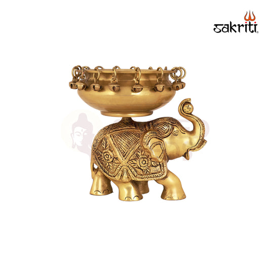 Brass Elephant Urli – 7.5 Inch length | Elephant Water Basin for Home & Pooja Decoration