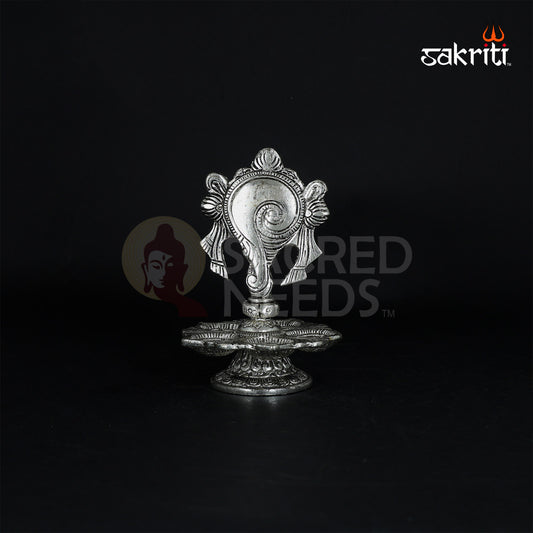 Aluminium Shankh Deepam Silver Polish – 5.5 Inch Pooja Oil Lamp for Festivals