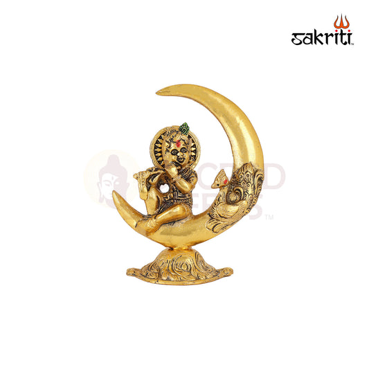 Aluminium Moon Krishna – 6.1 Inch Height | Krishna with Moon for Religious Worship & Decoration