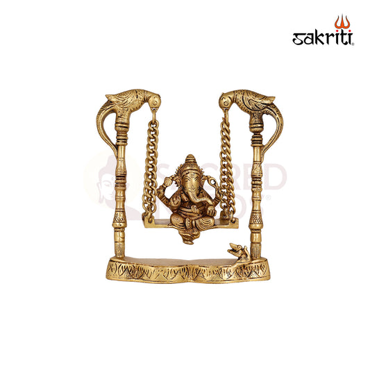 Brass Ganesha with Jhula – 7.7 Inch Height | Ganesha Seated on Swing in Brass for Decor