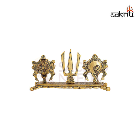 Aluminium Shankh Chakra Namam with Base Gold Polish – 3.3 Inch Divine Table Décor