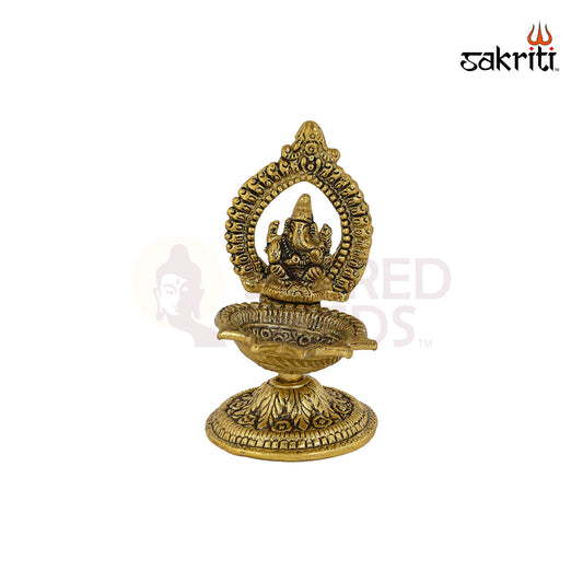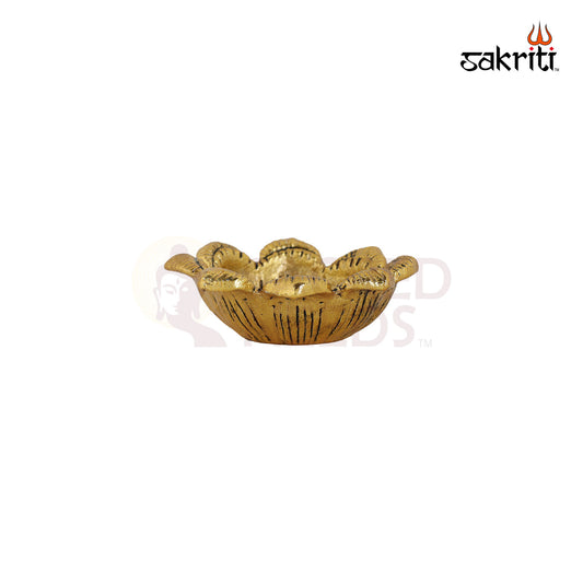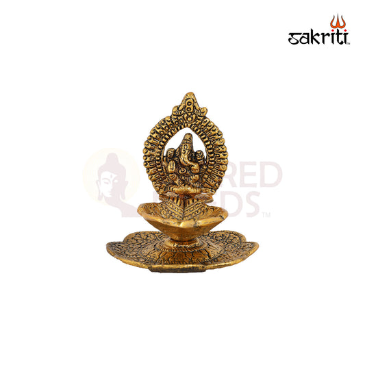 Aluminium Ganesha Deepam with Gold Polish – 0.9 Inch Decorative Worship Diya