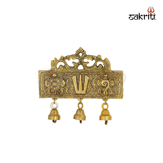 Aluminium Shankh Chakra Namam with Bell Gold Polish – 6.2 Inch Hanging Pooja Bell