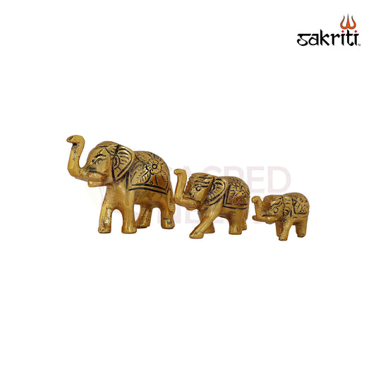 Aluminium Elephant Set Gold Finish – 2.4 Inch Traditional Décor for Living Room