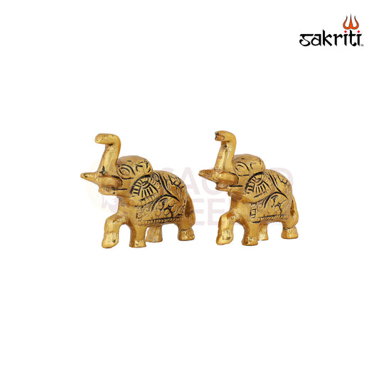 Aluminium Elephant Set Gold Polish – 5.2 Inch Handcrafted Decorative Accent