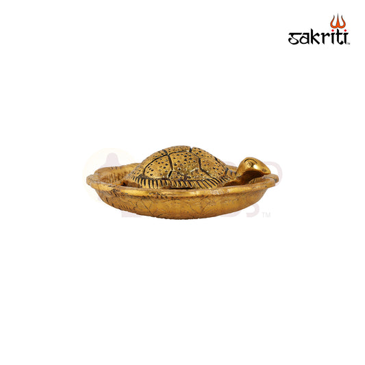 Aluminium Tortoise Plate with Gold Polish – 1.5 Inch Auspicious Decorative Item