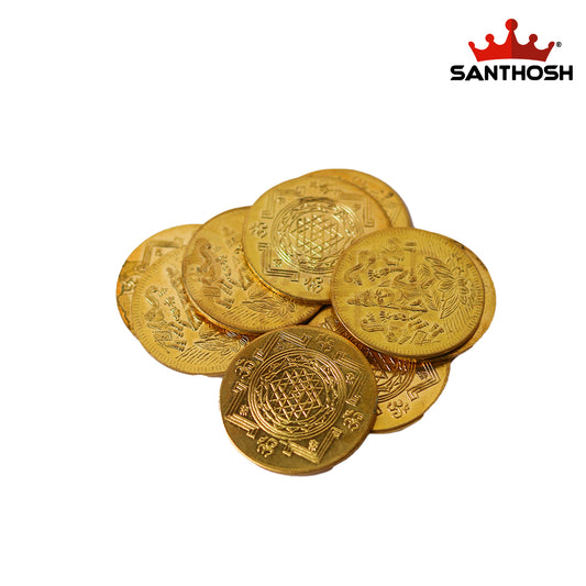 Sacred Needs Brass Pooja Coins – 10 Pieces Set | Traditional Hindu Temple & Pooja Articles for Lakshmi, Vishnu, and Prosperity Rituals