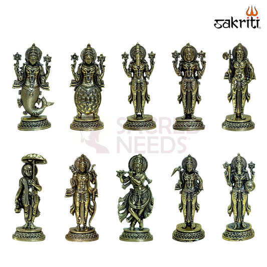 Sacred Needs Brass Dasavatara Set – 4.4 Inch Height | 10 Mini Idols of Vishnu’s Dashavatar for Pooja, Gifting & Collectibles