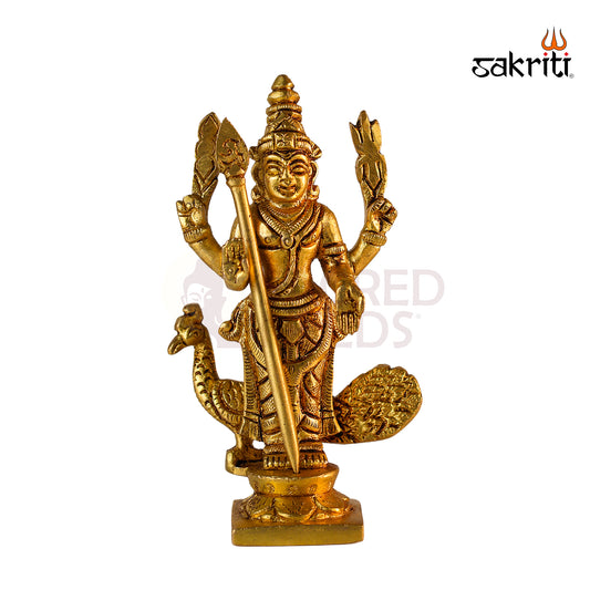 Sacred Needs Brass Murugan Idol – 5 Inch (12.7 cm) Height | Temple & Pooja Room Decoration