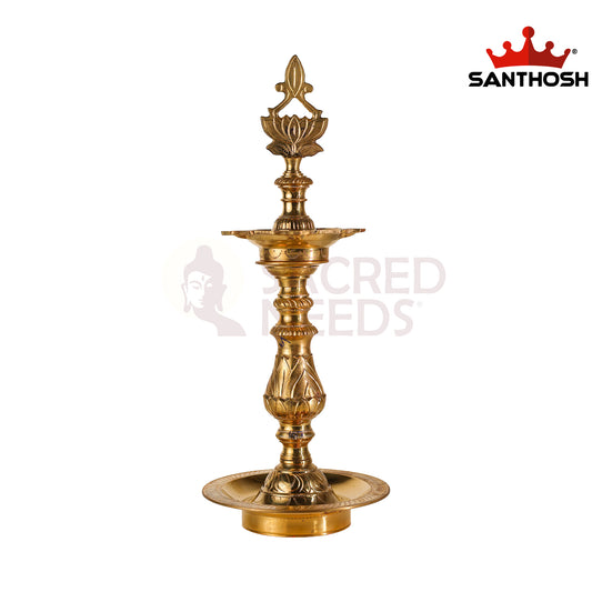 Sacred Needs Brass Katta Kuthu Vilakku with Lotus Porai – 16 Inch (40.6 cm) Height | Traditional Deepam Oil Lamp for Temple, Pooja Room & Home Décor