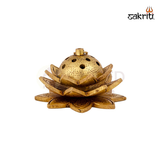 Brass Lotus Dhoop Dhani – 2.4 Inch Height | Lotus-Shaped Brass Incense Holder for Home Temple & Meditation