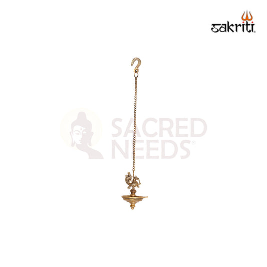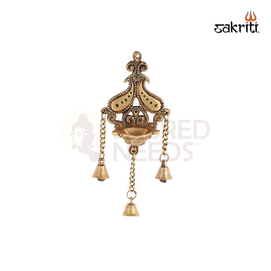 Wall Mounted Deepam with Bell – 11.5 Inch Brass Hanging Diya with Chime