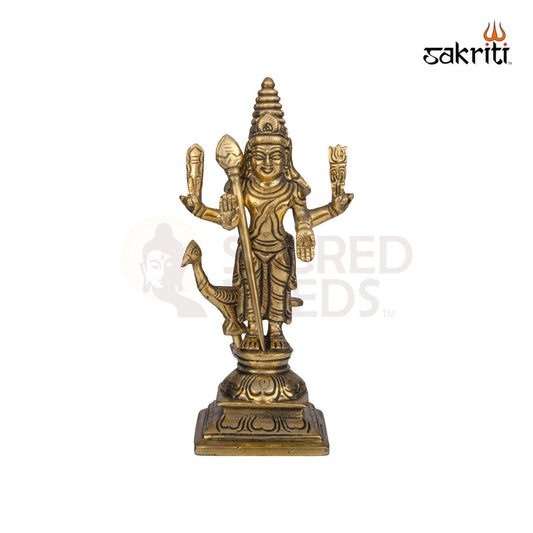 Brass Murugan Idol – 6.3 Inch Height | Subramanya Swamy Statue for Pooja, Festive Decor & Gifting