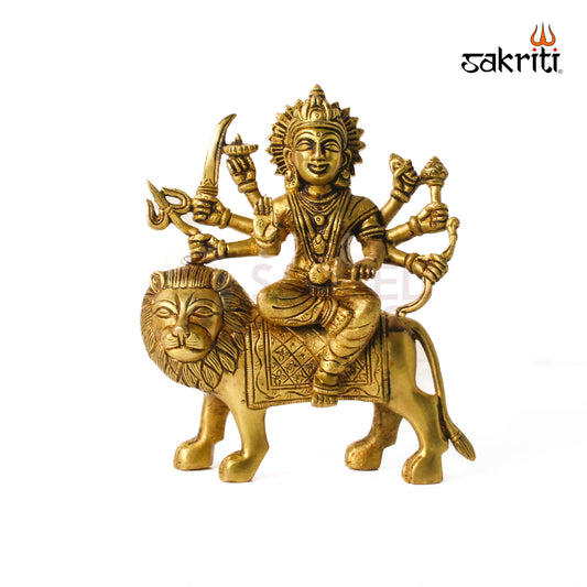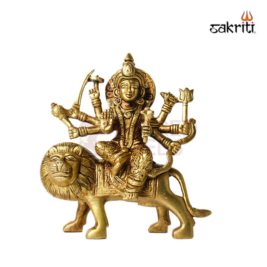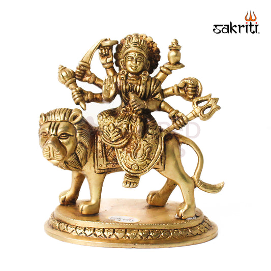 Brass Durga Idol – 6 Inch Height | Divine Goddess Durga Murti for Worship & Spiritual Decor