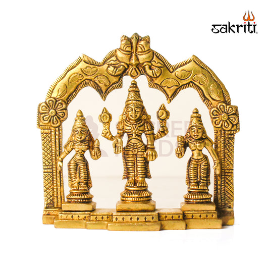 Brass Perumal Set with Arch – 5.3 Inch Height | Lord Vishnu with Arch Idol for Temple & Home Decoration