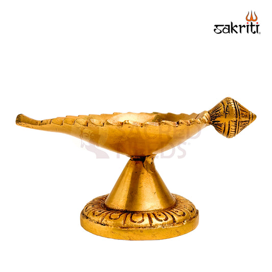 Brass Leaf Agal with Stand – 2.1 Inch | Traditional Deepam for Pooja & Festivals
