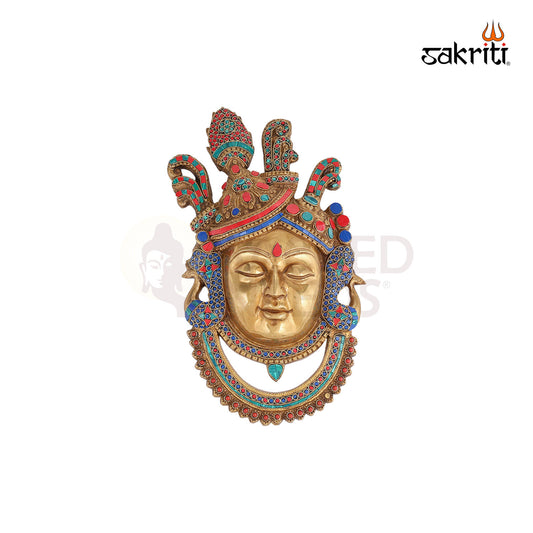 Brass Krishna Head with Stone – 17.5 Inch Krishna Face Adorned with Colorful Stones