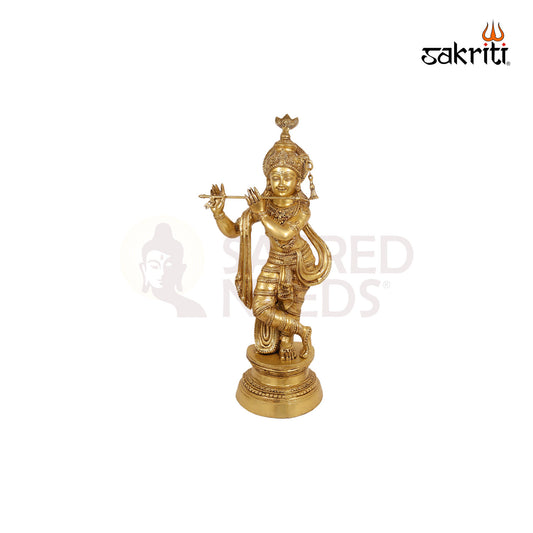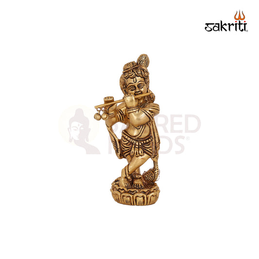 Brass Krishna – 5.2 Inch Flute-Playing Lord Idol for Devotional Corners