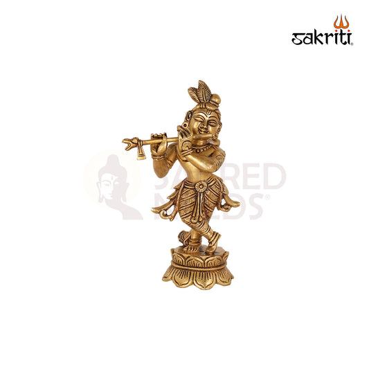 Brass Lotus Krishna – 7.6 Inch Lord Krishna on Lotus Base Idol for Pooja and Gifting