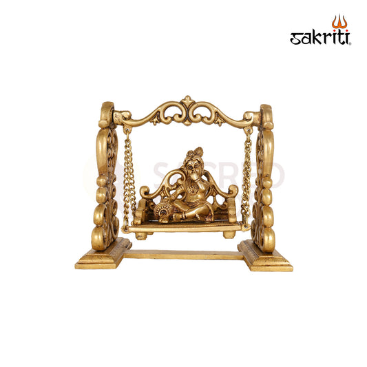 Brass Krishna with Jhula – 9.2 Inch Baby Krishna on Swing Idol for Janmashtami & Decor