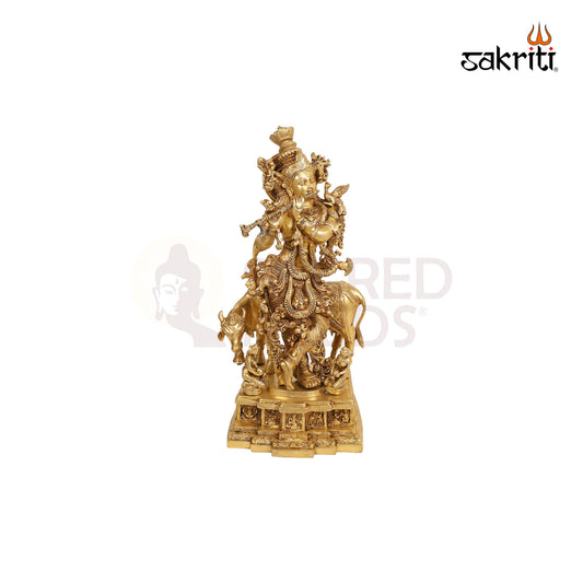 Brass Cow and Krishna Statue – 28 Inch Multi-Coloured Handcrafted Idol