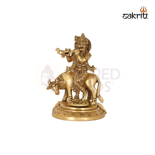 Brass Krishna with Cow – 5.3 Inch Govardhan Gopal Idol