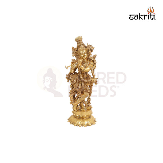 Brass Krishna with Lotus Base – 26.2 Inch Venugopal Idol