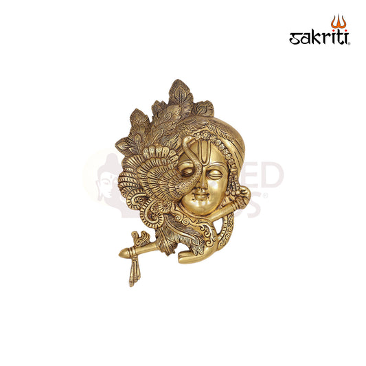 Brass Krishna Face Wall Mounted – 13 Inch Decorative Religious Art