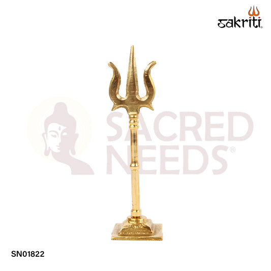 Brass Trishul Square Base – 4.7 Inch Shiva Trident with Stable Base for Rituals