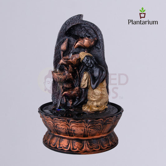Poly Resin Buddha Fountain – 16 Inch Height | Zen Indoor Water Fountain for Meditation, Office & Gift Use