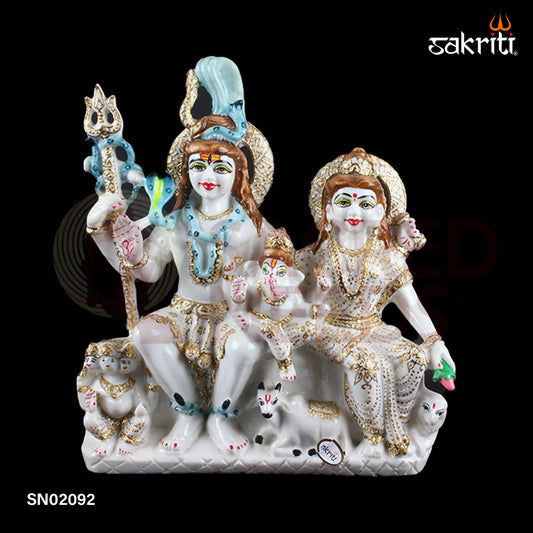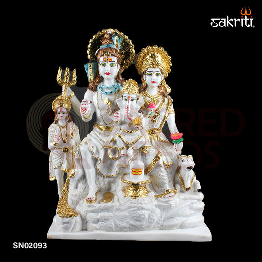Shivan Family Idol in Marble Dust – 5 Inch Height | Shiv Parvati Ganesha Murti for Temple, Home Mandir & Gifting