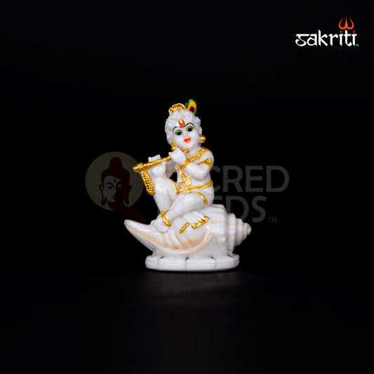 Shankh Krishna Idol in Marble Dust – 4.6 Inch Height | Lord Krishna with Conch for Home Mandir & Spiritual Decor
