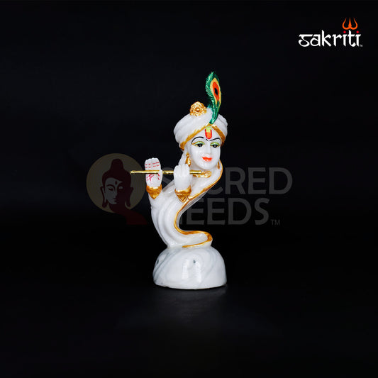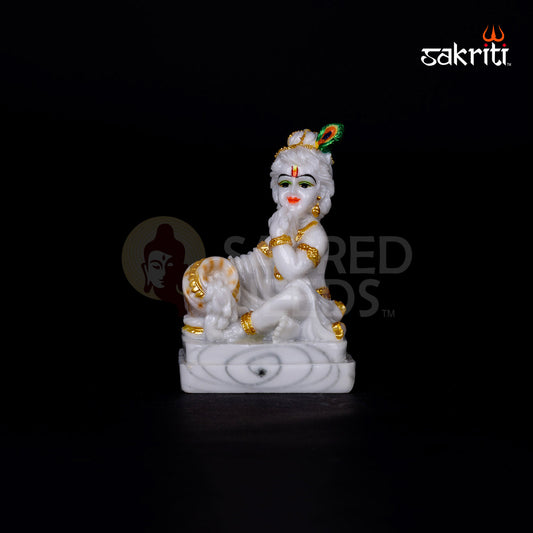 Krishna Idol in Marble Dust – 6.7 Inch Height | Flute Playing Lord Krishna Statue for Janmashtami & Decor