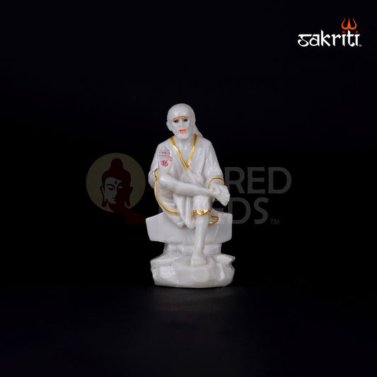 Sai Baba Idol in Marble Dust – 6 Inch Height | Shirdi Sai Murti for Devotion, Home Temple & Spiritual Decor