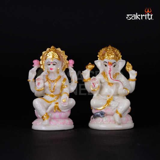 Lotus Lakshmi-Ganesha Set in Marble Dust – 4.3 Inch Each | 2PCS Diwali Pooja Combo for Wealth & Auspiciousness