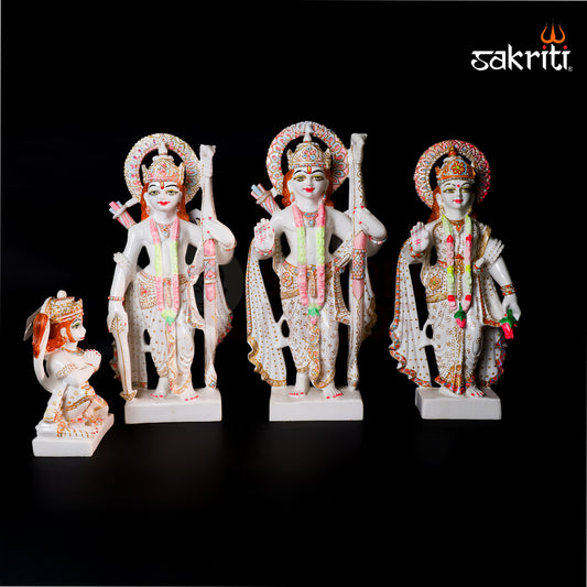 Marble Dust Ram Darbar Set – 17 Inch Height | Lord Rama, Sita, Lakshman & Hanuman Figurine for Temple & Spiritual Home Decor