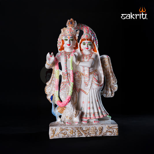 Sacred Needs Marble Dust Lotus Radha Krishna Idol Set – 14 Inch (35.6 cm) Height | Spiritual Pooja Room & Temple Décor