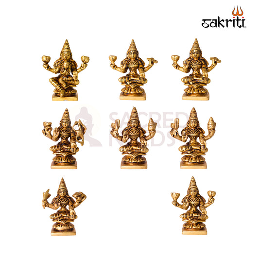 Brass Astalakshmi Set – 3.5 Inch Lakshmi Idol (8 Pieces) for Pooja Room, Temple Decor & Gifting