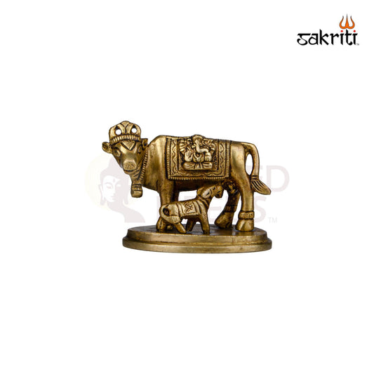 Brass Cow & Calf Statue – 2.7 Inch Height | Small Kamadhenu Idol for Pooja & Car Dashboard