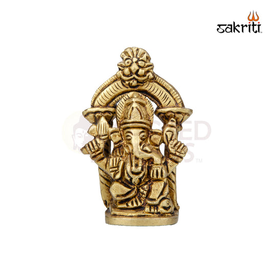 Brass Ganesha with Arch – 3 Inch Height | Vinayaka Statue with Prabhavali for Temple Decor
