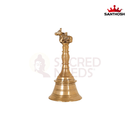 Brass Pooja Nandhi Bell – 7 Inch Height | Traditional Brass Temple Bell for Pooja & Rituals