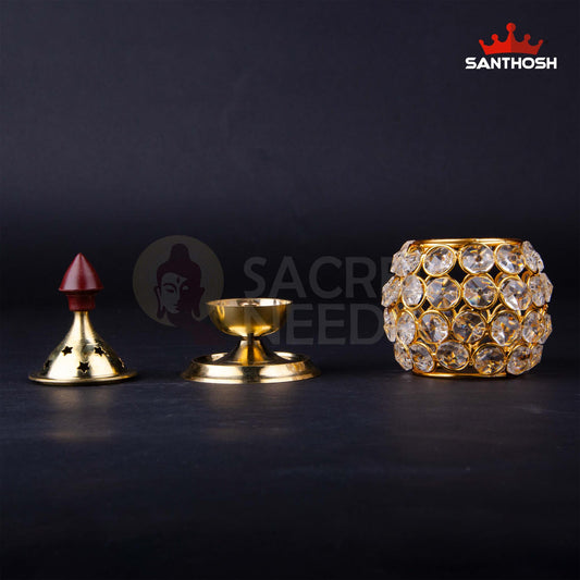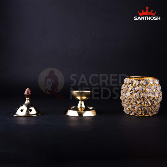 Brass Crystal Dholak Udipi Deepam – 7 Inch Height | Brass Crystal Oil Deepam for Pooja, Housewarming & Gifting