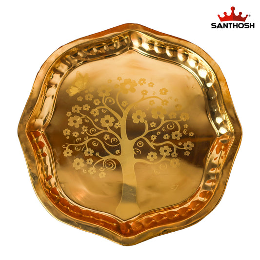 Brass Round Fancy Plate – 13 Inch Length | Traditional Brass Plate for Pooja, Offerings & Festive Décor