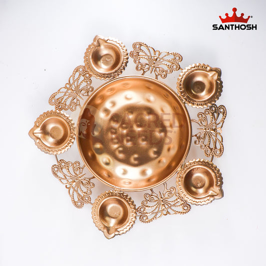 Iron 5 Butterfly Vilakku Urli – 8.6 Inch Length | Traditional Oil Lamp Bowl for Pooja, Festivals & Home Décor