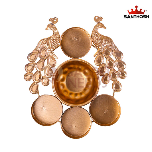 Iron 2 Peacock 4 Lite Urli – 5.6 Inch Length | Traditional Decorative Oil Lamp Bowl for Pooja & Home Décor