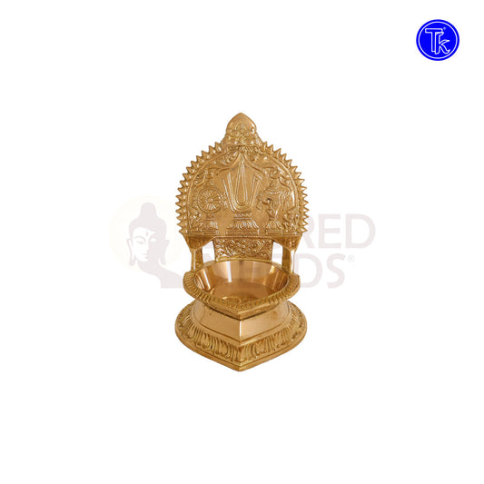 Shankh Chakra Namam Vilakku – 6.8 Inch Vishnu Symbol Lamp for Vaishnavite Devotion