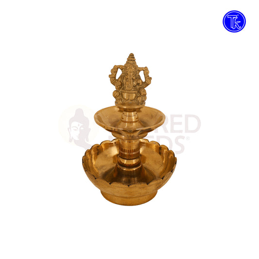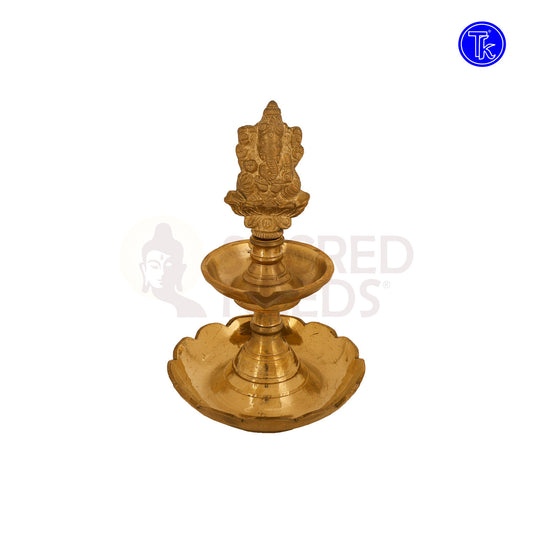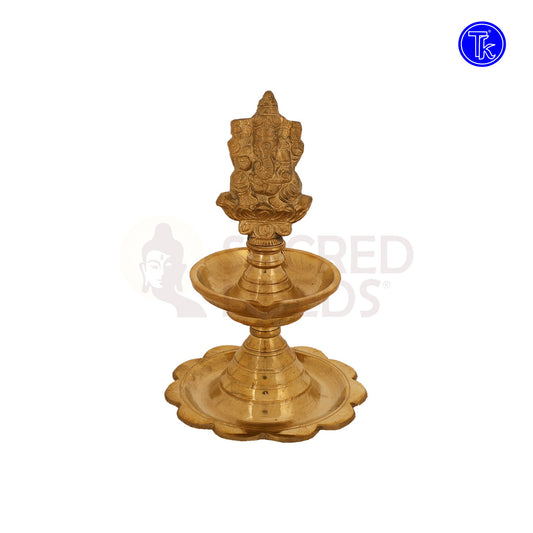 Brass Ganesha Diya with Lotus Plate – 6.7 Inch Sacred Lamp for Puja