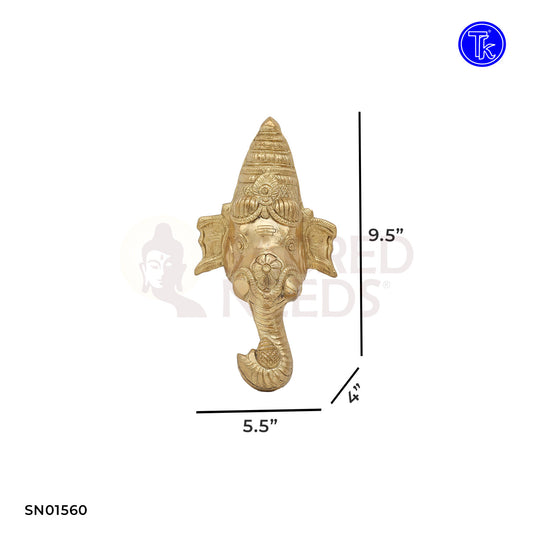 Brass Ganesha Face Wall Mounted – 9.5 Inch Ethnic Wall Decor