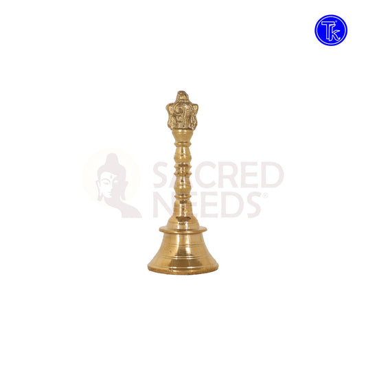 Brass Shankh Chakra Pooja Bell – 5.1 Inch Traditional Ritual Sound Bell